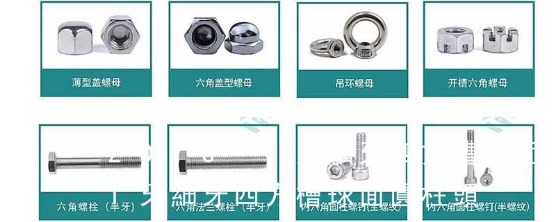 太陽能用雙段牙螺栓、內六角圓柱頭螺絲、內六角沉頭螺絲、半圓頭內六角螺絲、內六角圓柱頭軸肩螺絲、塞打螺絲、梅華槽螺絲、內六角緊定螺絲、一字緊定螺絲、方頭緊定螺絲、滾花頭螺絲、蝶形螺絲、拇指螺絲、自攻尖尾螺絲