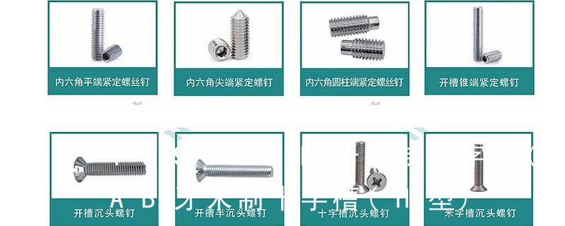 自切自攻螺釘有以下幾種型式:十字槽盤頭自切自攻螺釘,十字槽沉頭自切自攻螺釘。十字槽半沉頭自切自攻螺釘,六角頭自切自攻螺釘。3、自擠自攻螺釘(自攻鎖緊螺釘)自擠自攻螺釘的螺紋一般為機螺紋,很少采用自攻螺紋。在扳擰 ④頭型 :用字母來表示頭型的種類,可參看前文常用螺釘頭型分類。 ⑤牙型/尾型 : 用字母來表示牙型/尾型的種類,可參看前文“常用螺釘牙型/尾型分類”。 ⑥槽型 :參看前文“我司常用螺釘槽型分類”,十字槽或無槽(如沖六角頭