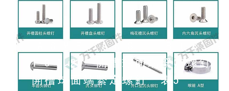 1)開槽普通螺釘多用于較小零件的連接。它有盤頭螺釘、圓柱頭螺釘、半沉頭螺釘和沉頭螺釘。盤頭螺釘和圓柱頭螺釘?shù)尼旑^強度較高,瑁在普通的部件連接上;半沉頭螺釘?shù)念^部呈弧形,安裝后它的頂端略外露,且美觀光滑,一般