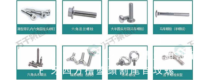 槽型:1.一字2.內三角3.內角四方4.十字5.米字6.花形7.梅花形8.花形一字9.特形10.內六角英文名稱十字槽盤頭組合機絲牙螺釘 采用的是GB818 Cross recessed pan head Combination screws十字槽盤頭機絲牙螺釘 采用的是GB818 Cross Hexagon head bolts with fine pitch thread full thread六角頭螺栓 細牙 全螺紋 Hexagon flange bolts –heavy series-product grade B 六角法蘭面螺栓 加大系列車員 B級 Cross recessed pan head tapping screws 十字槽盤頭自攻螺釘 Hex