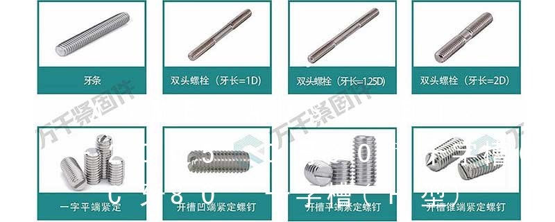 B-英規(BSW) S-國際標準(ISO) T-特殊標準 規格標準——GB標準 十字槽盤頭自攻螺釘 GB 845-85 十字槽沉頭自攻螺釘 GB 846-85 十字槽半沉頭自攻螺釘 GB 847-85 開槽盤頭自攻螺釘 GB 5282-85 開槽沉頭自攻螺釘 螺栓有:1、方頭螺栓,2、半圓頭方頸螺栓,3、十字槽盤頭螺釘,4、內六角沉頭螺釘,5、方螺母C級,6、蝶形螺母,7、六角頭螺栓,8、十字槽盤頭自攻螺釘。大小有M18、M6、M8、M16、M10、M12、M14、M20等型號。通常用