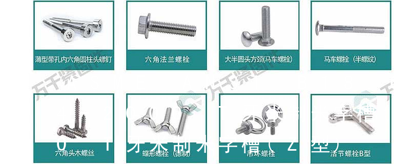 B:球面圓柱頭; C:圓柱頭; F(K):沉頭; H:六角頭;HW:六角頭帶墊圈; O:半沉頭; P:平元頭; R:半元頭;PW:平元頭帶墊圈; T:大扁頭; V:蘑菇頭;④ 螺釘牙型 A:自攻尖尾(日標第1種)疏 20.GB102-86 六角頭木螺釘 材料:鋼 銅 L0≈2/3L 21.GB/T14210-93 墻板自攻螺釘 L≤50mm 全螺紋L1=6mm L>50mm b>45mm 材料:日本SWRCH18A 美國C1018 22.QB/SB1005-91米字槽沉頭纖維板螺釘 材料:滲碳鋼 L